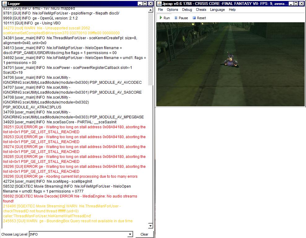 JPCSP games tested with Athlon X2 4850e, 4 GB RAM, Radeon HD 3300 (onboard), OpenGL: 3.3.11653, Windows XP SP3 32-bit