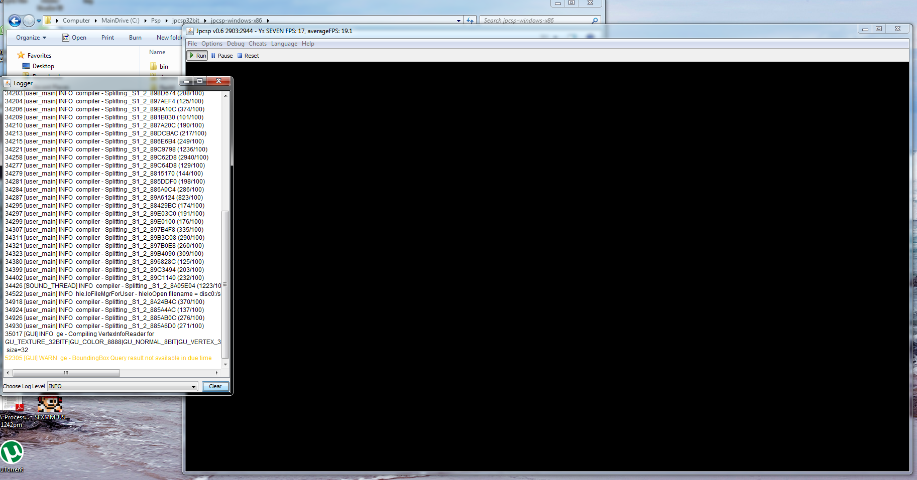 JPCSP games tested with Athlon X2 4850e, 4 GB RAM, Radeon HD 3300 (onboard), OpenGL: 3.3.11653, Windows XP SP3 32-bit