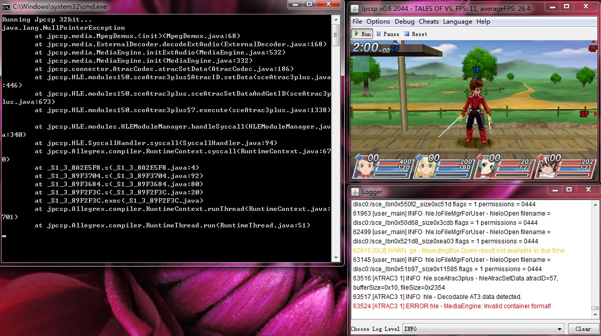 when "MediaEngine: Invalid container format!" error occurred,jpcsp was frozen.
