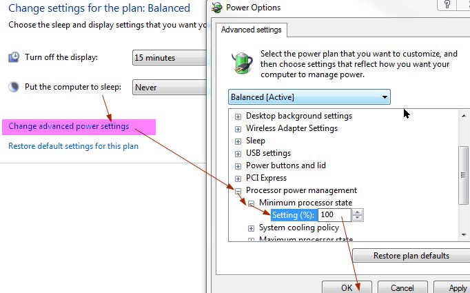 since you have an Intel processor you can also go to control panel -> power options and set the minimum processor state to 100% so the cpu clocks to full speed and doesn't try to downclock or go idle while playing a game.