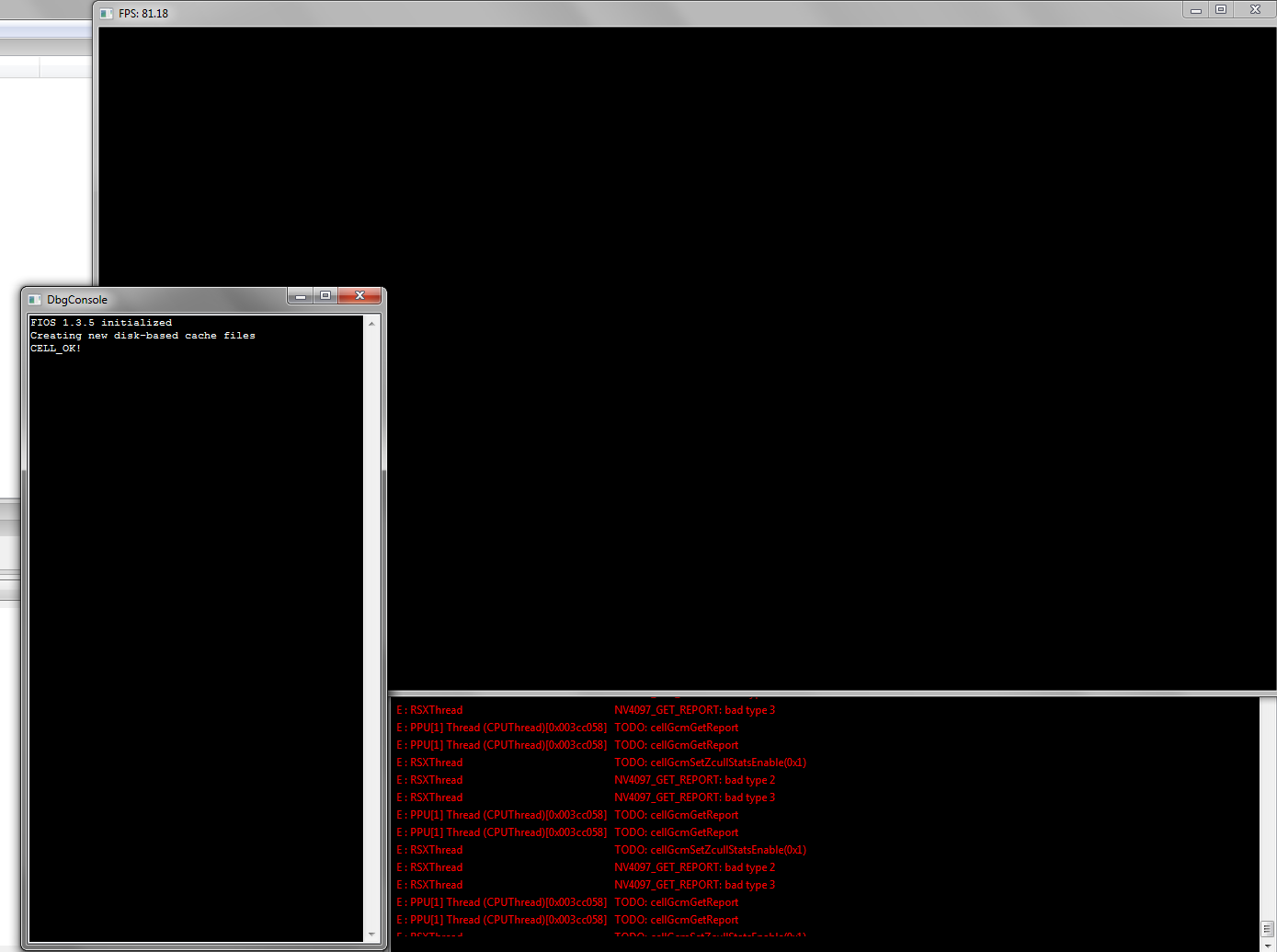 Black screen, 80 fps looping on gcm errors. There is also a warning about not enough free hdd space.