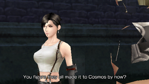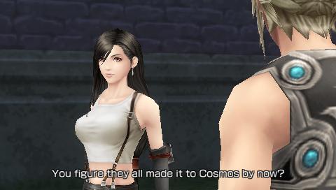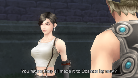 On the External Software Renderer, vertical lines appear on the center of a character's face and even less textures are rendered on the character models. Some graphical artifacts appear on the background and the clouds are not as detailed as the PSP rendering.