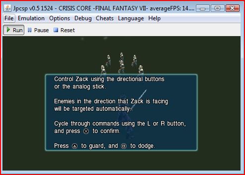 Inital start (Only GE, Endwaitthread) ![]() (Options -> Unchecked Only Ge , EndWaitthread- reset -> reload iso -> play) ![]() [i think the FPS are inaccurate maybe something failed to reset on reset, i still think Only GE and Endwaitthread provide a better experience.] If you fully close jpcsp with and restart with Only GE unchecked fps will be horrible ![]() ![]() also if you have the patch file in patches it fill force some settings even if you disable them in the options ULUS10336.patch forces these options # TITLE = CRISIS CORE:FINAL FANTASY VII emu.disablesceAudio=0 emu.ignoreaudiothreads=0 emu.disableblockingaudio=0 emu.useViewport=1 emu.enableMpeg=1 emu.useVertexCache=1 emu.disablereservedthreadmemory=1