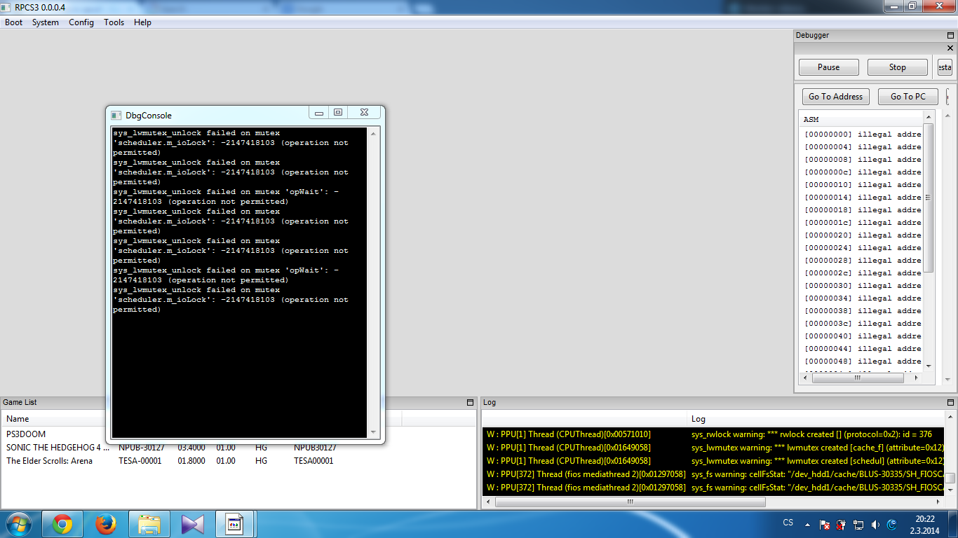(03-02-2014, 07:28 PM)Patrikb56 Wrote: I tried to launch Splatterhouse. It's commercial game. I decrypted EBOOT.BIN to eboot.elf. Game will load but no OpenGL windows. Only message sys_lwmutex_unlock failed. And then after one second emulator crashes. Code is here: http://pastebin.com/mB8UQmxT