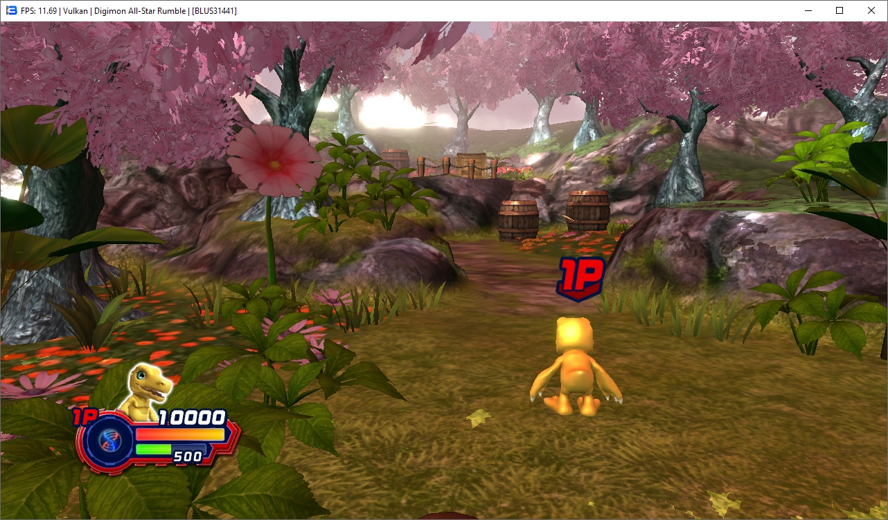 OpenGL and Vulkan both boot. Speed isn't that great in some modes. In story mode, I get around 12-13 fps with both renderers. Battle mode ranges between 30-45 fps with OpenGL and 40-60 fps with Vulkan, depending on the stage. OpenGL shows some artifacts related to lighting; Vulkan is much better in this regard. See screenshots #1 vs #2 (battle mode) #3 vs #4 (story mode) as an example.