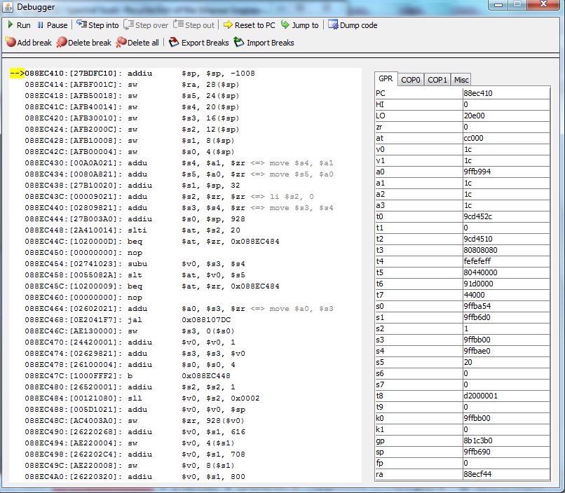 0x088EC410: 0x27BDFC10 - addiu $sp, $sp, -1008