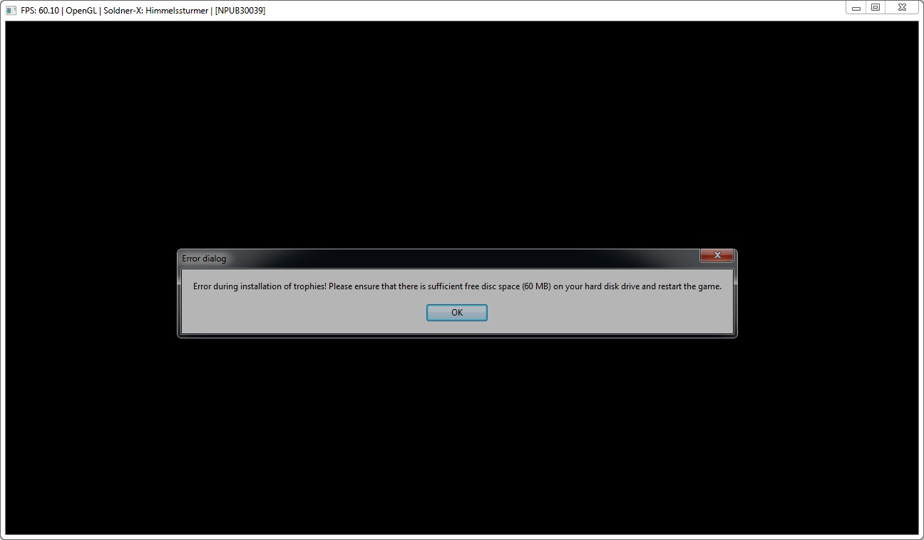 Displays error message, that game can't install trophies due to insuffient space on HDD
