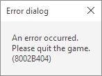 Same error. Changing the settings does not lead to anything. Google does not know anything about this error. Could this be the defense of the game?