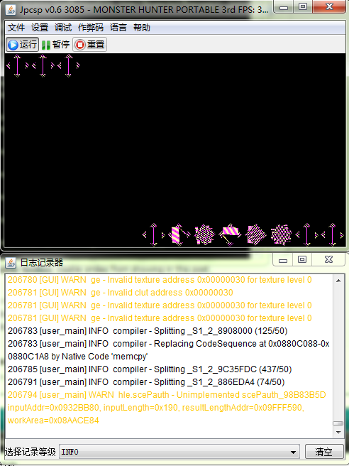 There is a nice game could not be emulated normally by the jpcsp,which name is"MONSTER HUNTER PORTABLE 3rd"!