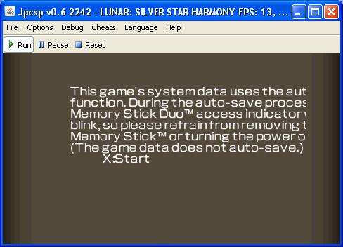 JPCSP games tested with Athlon X2 4850e, 4 GB RAM, Radeon HD 3300 (onboard), OpenGL: 3.3.11653, Windows XP SP3 32-bit