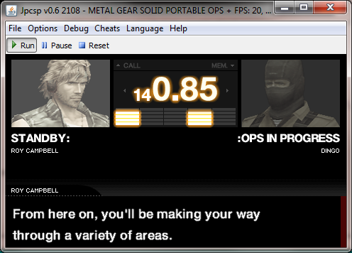Metal Gear Solid: Portable Ops Plus + NTSC (USA) version works. I tested it on JPCSP v0.6 2108 on operating system Windows 7 Ultimate. The greatest problem I have is that that the movies do not play and gameplay is slow. However, putting that aside this emulator is the most promising and well developed one out on the web so far. I changed many of the options and ran tests and it runs pretty much the same either way. I can run Metal Gear Solid 3: Snake Eater on full FPS on PCSX2, fyi, so imho I don't have a terrible computer. I'll update this post if I have any new info.