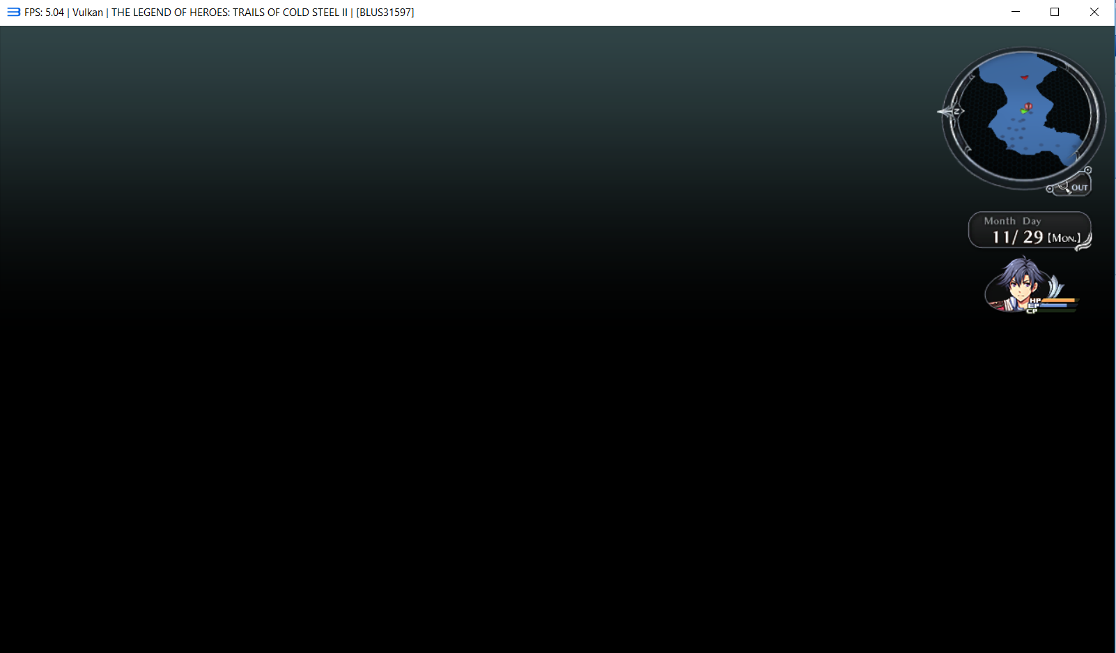 3. The biggest problem is that the field map is black (mini map, flashback scenes, and even character status is visible). You can see everything else though except that. Attached are pics.