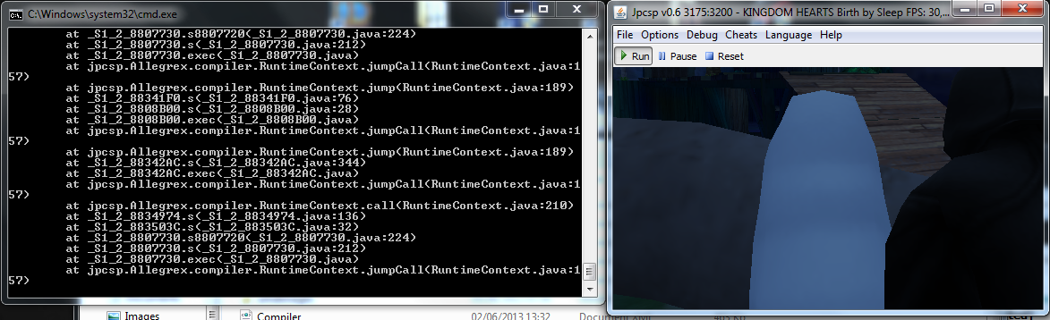 So, as the title of the thread says, I tried to play Kingdom Hearts Birth by sleep on jpcsp. I've looked around the forum for a while and I can't seem to find a solution to my problem. Most of the problems were either the sound or black screens. But my game loads, has perfect sound, I get around 25 fps which is acceptable, the cutscenes work, but not for long.