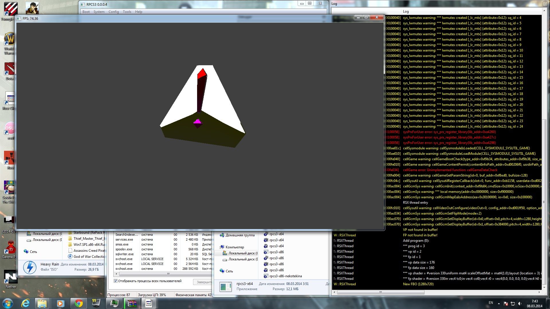 It seems this is logo is actually "bad news". BlackDaemon just sent me this link (see the video below). That 3D "yellow triangle of death" is a known issue on PS3 CWFs, and was somehow triggered on this one. BlackDaemon fixed it by replacing the PARAM.SFO of this game with the one of another game and replacing the title ID with the correct one. Once that is fixed, we skip that error, but obviously no more stuff appears on screen.