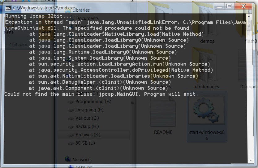 I downloaded jpcsp 0.6 ( 2373-windows-x86 ) , but when I click on " start-windows-x86.bat " a black window ( command ) appear for a second then disappear . and the program not opening .