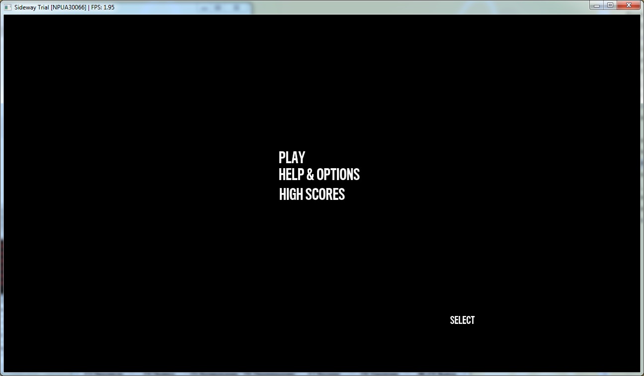Shows menus with very broken graphics, and probably stuck on loading screen.