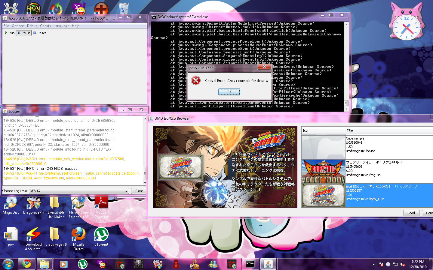I have a problem with my emulator. Whenever I try to load a game(Katekyo Hitman Reborn Battle Arena), it loads. But when i click RUN, the emulator suddenly closes. I used the r1722 since its the one stated at the compatibility. How to fix this??