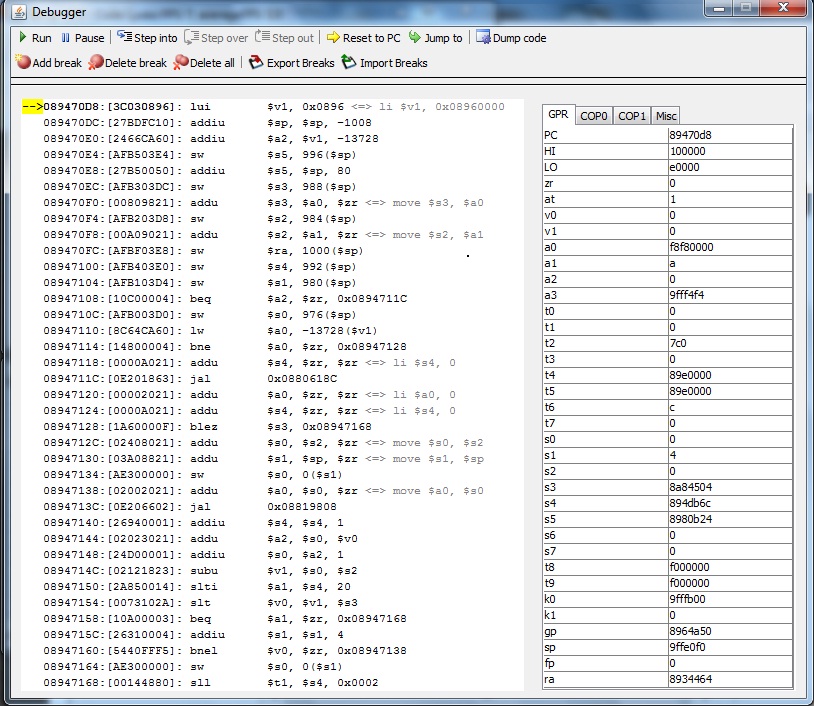gp:0x08964A50 sp:0x09FFF520 fp:0x00000000 ra:0x088A1570