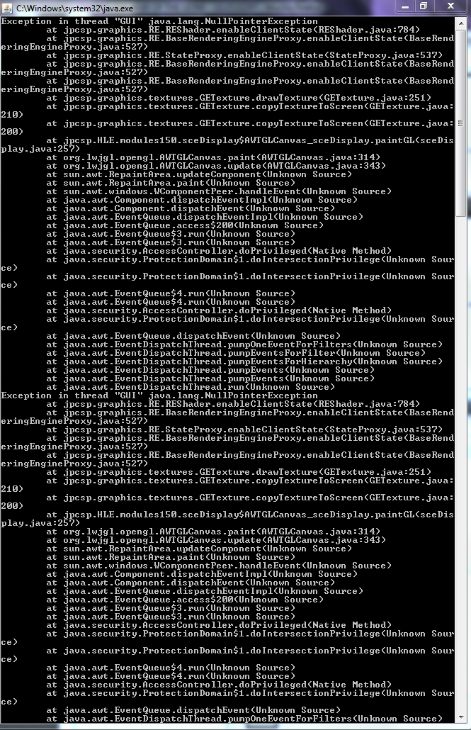 Originally I was just getting the clicking sounds and a really low frame rate. However that was a while back. I'm trying to do it again, though I'm getting a bit of a different problem. I have all of my settings set to Hyakki's original post. I load UMD, hit run, and the code box fills with a lot of stuff, but nothing actaually starts playing. I'll put up an attachment of the image I get. I'm using the r2953 build from here, http://buildbot.orphis.net/jpcsp/ I'm also runing it through Hyakki's Launcher, the newest update. Edit: Game loads up when I return all the default settings, and it loads, but I get the 30FPS again. Edit2: I do run Windows 7 64 bit, but I downloaded the 32 bit for the emulator.