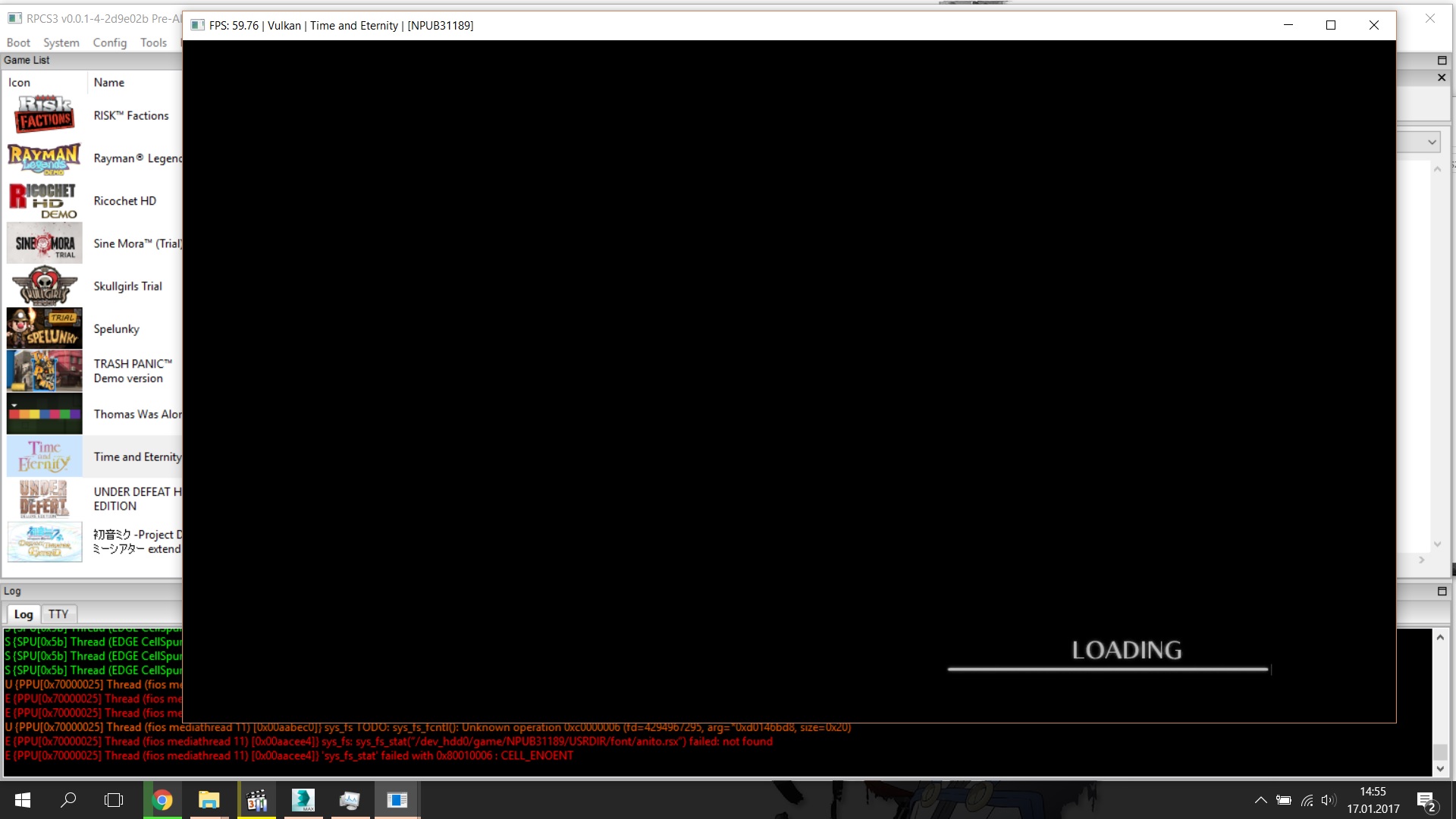 Game shows loading screen fast, but unfortunately stops loading at some point. I've tried adding libsysutil_np_thropy and libsysutil_np but it resulted in 0x0 read error