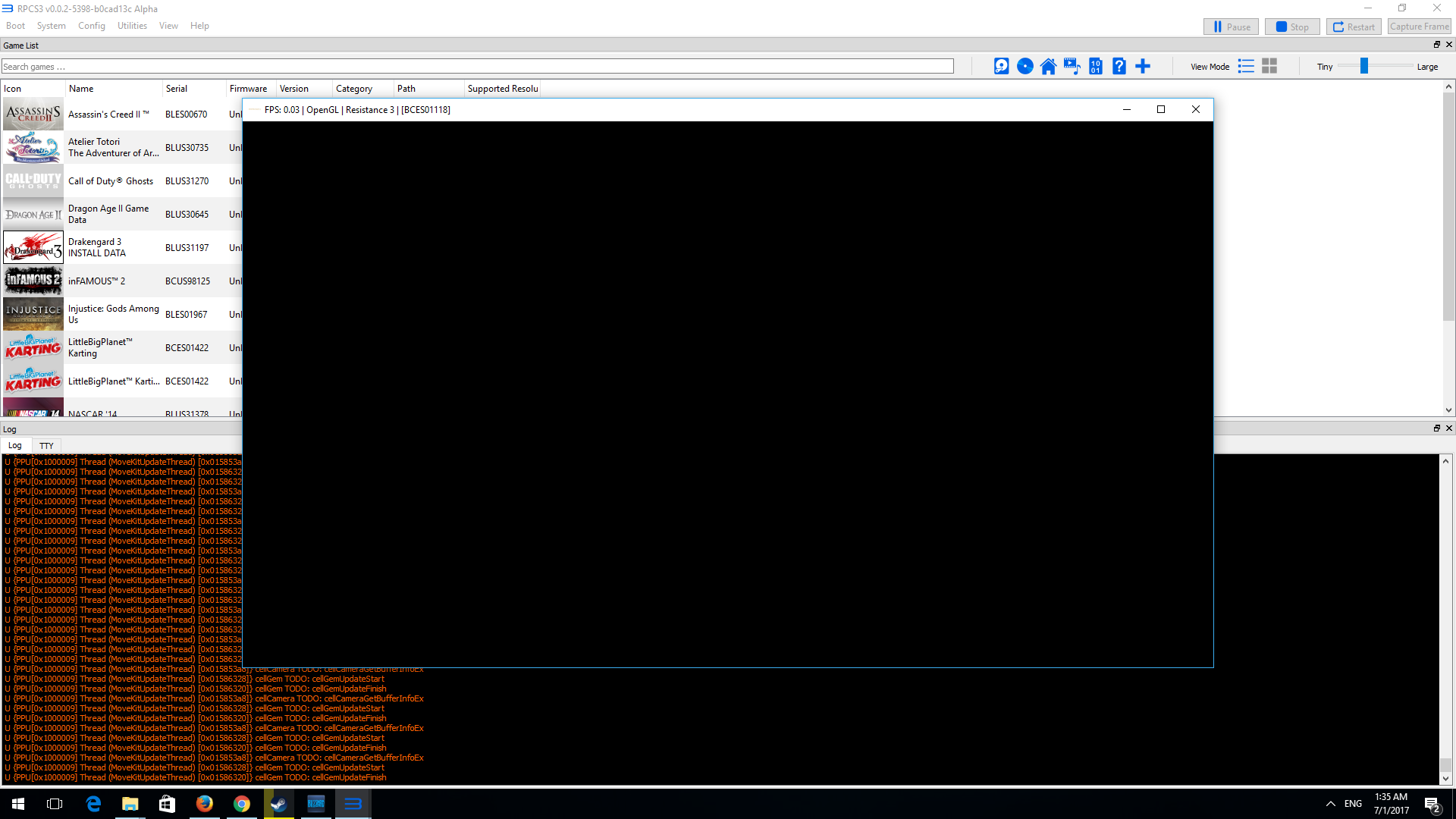 U {PPU[0x1000000] Thread (main_thread) [0x00c99fac]} cellGcmSys TODO: cellGcmSetZcull(index=1, offset=0x1380000, width=960, height=704, cullStart=0x180000, zFormat=0x2, aaFormat=0x0, zCullDir=0x0, zCullFormat=0x1, sFunc=0x1, sRef=0x0, sMask=0xff)