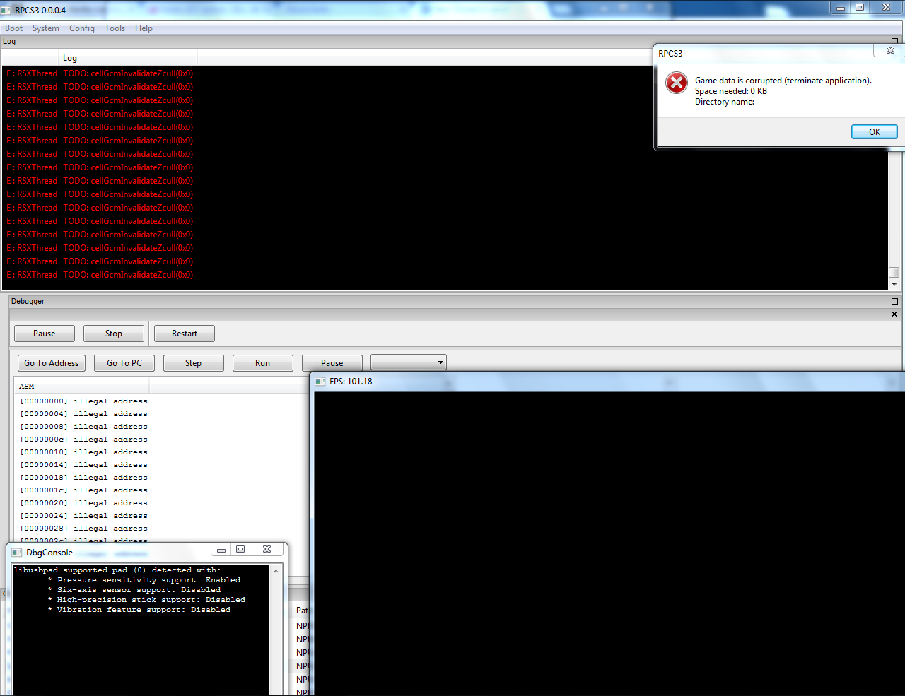 Game opening window with hundred fps, and debug. All is good, but it hang at error that you can see at the screenshot.