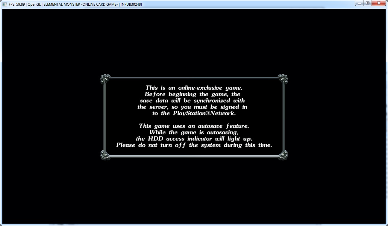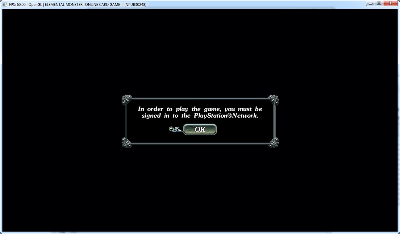 Tested on recent master build v0.0.1-8-60bd2fb. Graphics improved since last test, game asking to be logged into PSN.