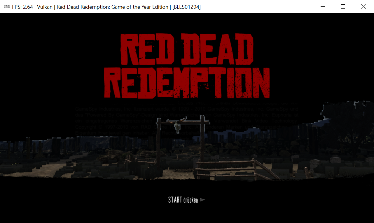 I tested RDR on my Intel NUC (i3 7100U @ 2,4 GHz; Intel HD 620; 2x 4GB DDR4 2133 MHz in Dual Channel configuration) to see what would happen. The game booted up and even went ingame but the skybox is broken, probably due to missing Intel HD Vulkan support on RPCS3. It should be noted though that with a closer look at the transition between sky and landscape it can be seen that the sky is a bit loaded, so the issue could be fixed. I also noticed that the textures loaded in the menu seem to be pasted on the sky later ingame as seen on the screenshots I made some days earlier. OpenGL was a total graphical mess, you will see it in the attachments. Anyways, here are some screens of it. I made a bunch of them so you can see what is going on with RDR on a NUC on Vulkan and OpenGL.