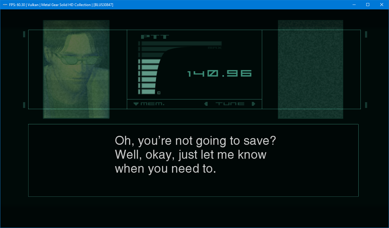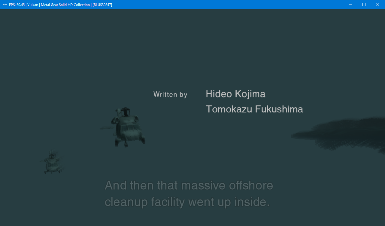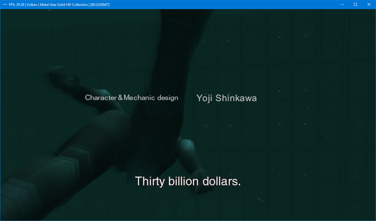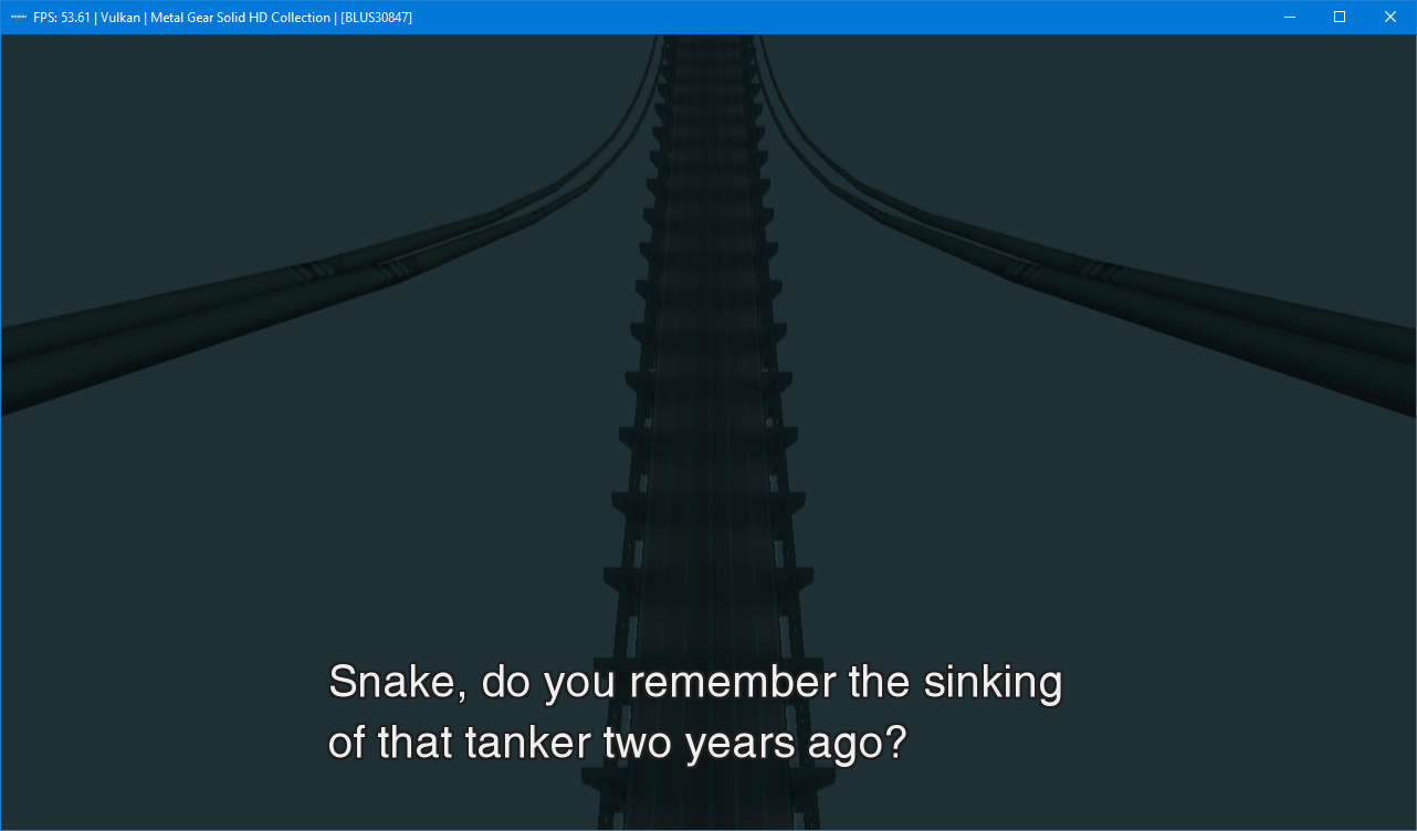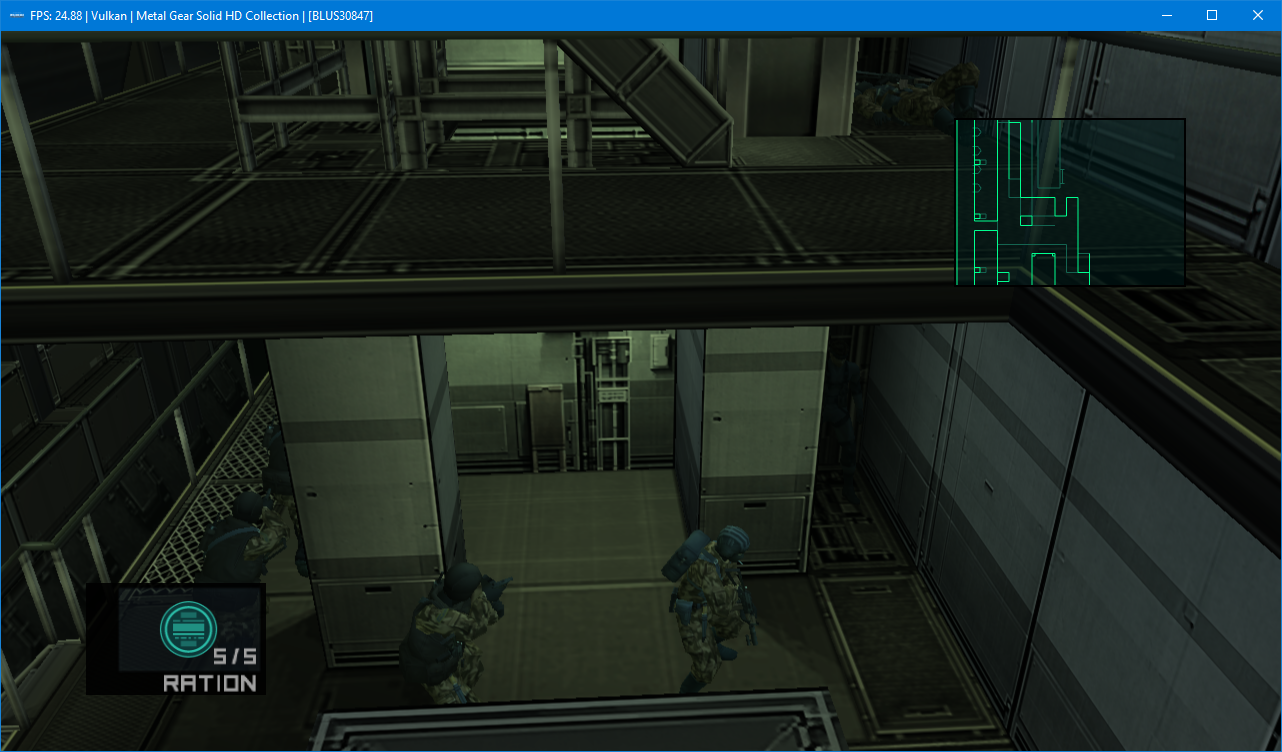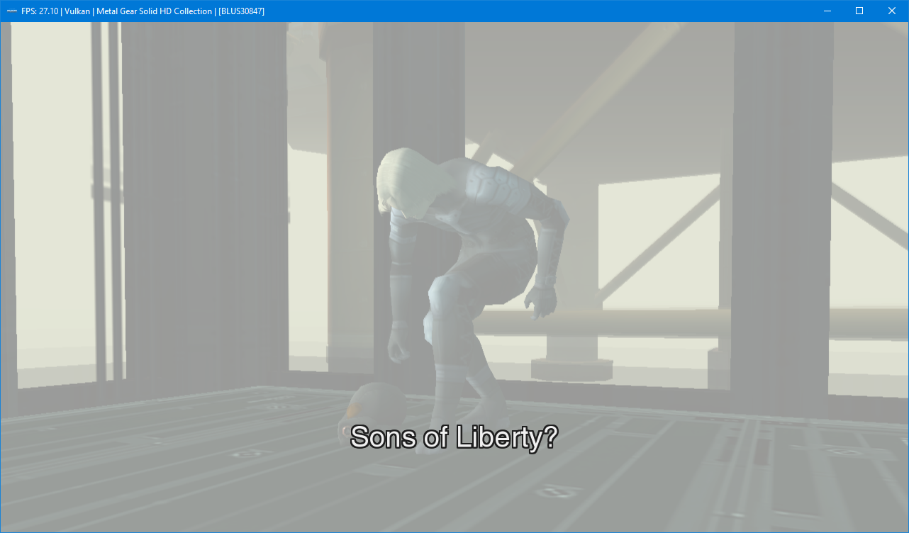MGS2 and 3 HD render, and are playable. There are graphical bugs which can be found in my screenshots (MGS3 screens to be added) but the games themselves are playable with variable framerate (20-60) on my system, an i5-4690k and GTX 970.