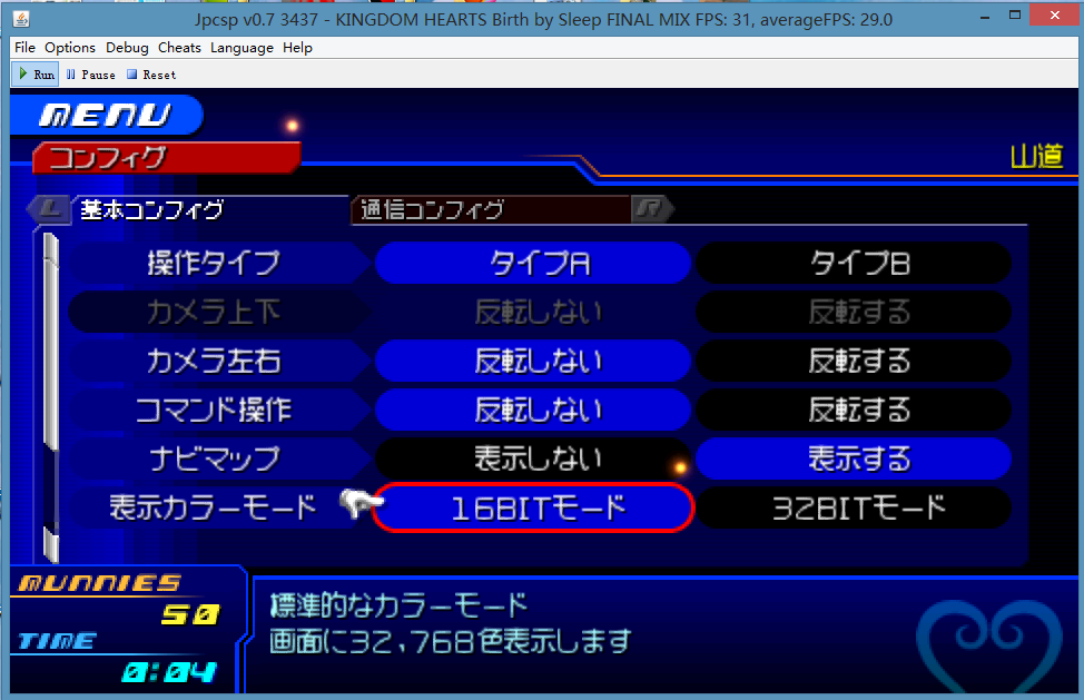 Kingdom Hearts Birth by Sleep Final Mix which game allow you choose 16 bit color depth or 32 bit color depth