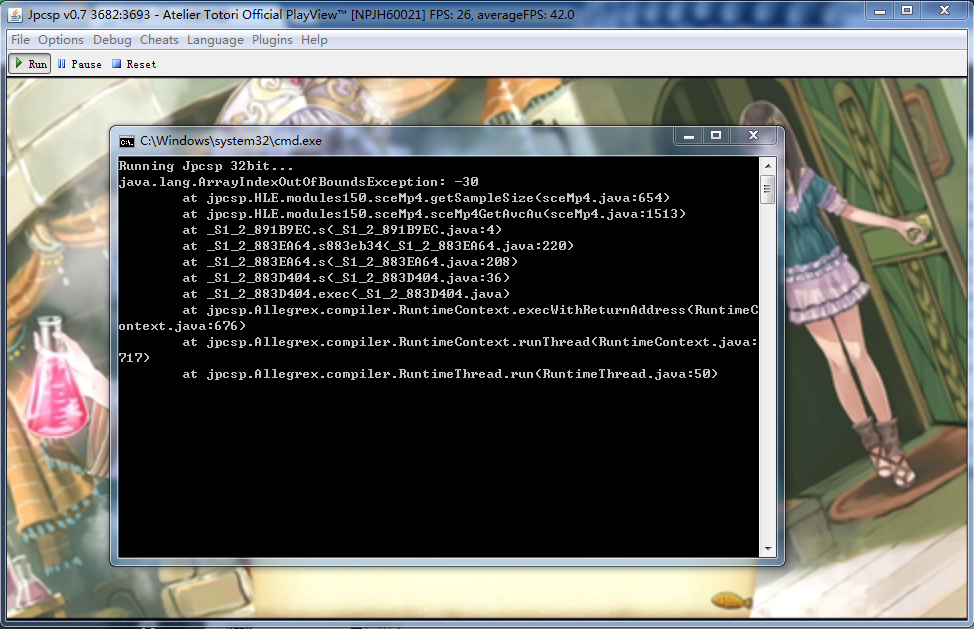 This game was tested on 4098f5d. The videos in this game end prematurely on JPCSP and can't be looped. Sometimes the videos are decoded poorly and show lots of graphical garbage. The Log Settings that I used were: