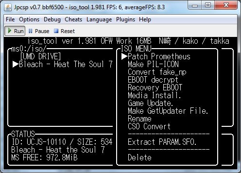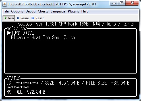 This homebrew utility was tested with revision bbf6500. Although JPCSP is able to load iso_tool, most of the options do not work as the log shows invalid memory address errors. I have included a Debug Log of iso_tool being used on PPSSPP v1.0.1-777-gf4e0034.