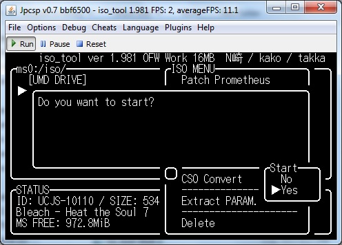 This homebrew utility was tested with revision bbf6500. Although JPCSP is able to load iso_tool, most of the options do not work as the log shows invalid memory address errors. I have included a Debug Log of iso_tool being used on PPSSPP v1.0.1-777-gf4e0034.