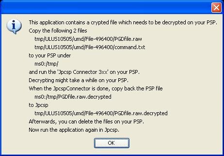8) Copy the new files to the PSP, run JPcspConnector again and then move the .decrypted file back to the PC, again run JPCSP for the third file