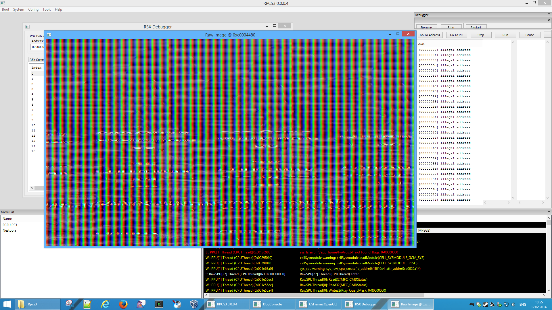 The good news is that this game is able to create a texture (see RSX Debugger) and bind it to the image you see without crashing due to other reasons.