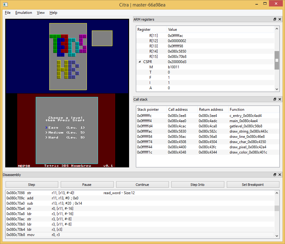 ![]() ![]() Today, I've found something relevant to this topic and I think it's quite interesting, I mean I saw it before but until now I've never seen this project compiled so for me personally, this is the first time. What are your thoughts on this project guys? Do you think we can expect 3DS emulator relatively "soon", after all? ![]() Now, I don't want to be skeptic but at this point I think it's still not easy to be an optimist either, so speaking of 3DS emulator available "soon" may probably mean months or even years, but still, this is a good start towards this goal, isn't it? :p Citra [external link to emucr] Quote:Citra Git (2014/04/25) is released. Citra is an experimental open-source Nintendo 3DS emulator/debugger written in C++. At this time, it only emulates a very small subset of 3DS hardware, and therefore is only useful for booting/debugging very simple homebrew demos. Citra is licensed under the GPLv2. Refer to the license.txt file included.