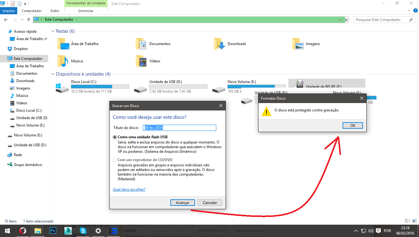 (It is in Portuguese but I think you can understand easily. Briefly the first message asks how I want to use the disk and the second is that the disk is write-protected.)