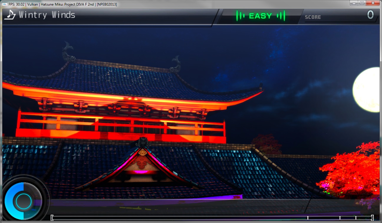 Tested on Auto LLE and Vulkan with FHD resolution. After you go to menu you will see spinning miku with full zoom, guess this is propably calibation issue so you can correct that by pulling left stick a little to yourself and left to right. After you can play tutorial after that. When it comes to regular music levels, on recent release (b7f8720) it show active loading screen but it never loads. A month or two ago this game showed access violation on loading screens.