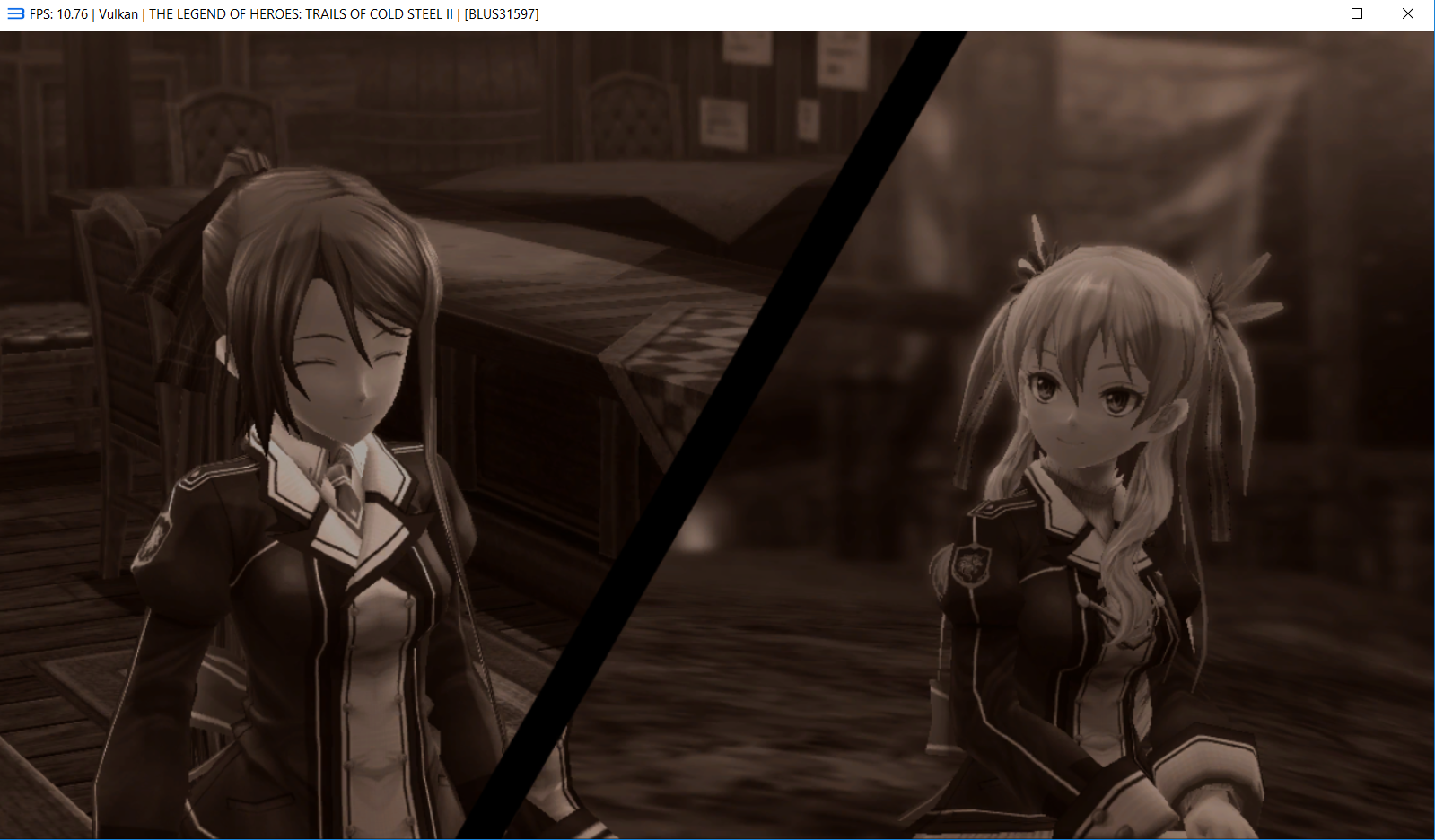 I could only try it on D3D12 since my OpenGL doesn't work anymore on the newest builds. Now usually my crappy video card shoots down my hopes of playing these games because Trails of Cold Steel 1 doesn't work for me. But maybe I'm just missing a little thing here to get this to work?