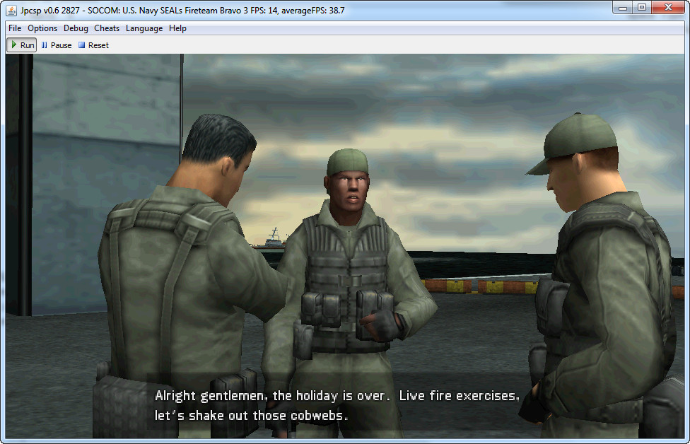 Besides for that game runs at decent (not full) speeds, the game engine seems to be able to compensate for frame loss (it probably looses fps on the psp too :p)