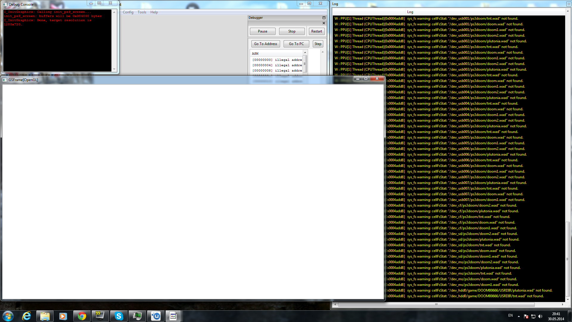 Now with openal output audio is kind of reported to work by the game dbg output, but does't (or you just can't hear much at this frame rate if it too skips as hard). Let it run for two minutes and it eventually dies with