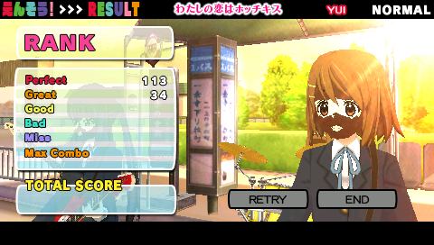 This game is playable although there seems to be a problem with the audio thread messing up and causing strange music playback speeds. I've attached a log file which is filled with warning messages from the audio thread. Any background music plays fine for the first second or so and then goes way too fast. Music in the actual rhythm game seems to be the opposite, it goes way too fast and skips at the beginning but then plays at the correct speed. All music in this game is in Atrac3+ format so decoding through SonicStage is needed to get the audio to play. The decoded WAV files play just fine using an external player. Other than the audio speed issues and the occasional missing face textures, this game runs just fine and the controls are responsive with no lag so it's possible to do well in the game even with the messed up audio synchronization. I even managed to get a perfect rating on one of the easy songs by concentrating solely on the visual cues and ignoring the music.