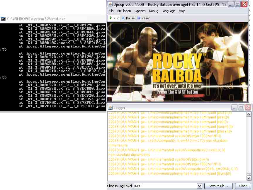 I'm trying my own Rocky Balboa ISO with the latest JPCSP build (1959) and it shows the 1st screen (Memorystick instructions) asking you to press 'X' to continue. If I press X really quick, it starts showing the intro movie (Ubisoft logo) and freezes after 1 second or less. And if I try to press X after some time, it freezes at the Memorystick screen and does nothing else.