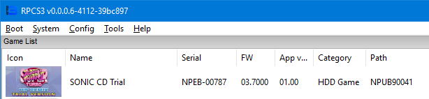 The game shows in the rpcs3 menu gamelist with the Sonic CD name but the Super Puzzle Fighter II Turbo HD Remix icon and with you click it launch the game.