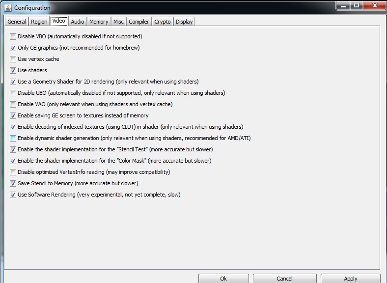 [ ] Disable UBO (automatically disabled if not supported, only relevant when using shaders)