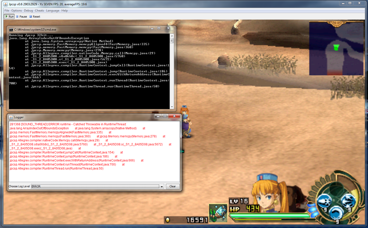 JPCSP games tested with Athlon X2 4850e, 4 GB RAM, Radeon HD 3300 (onboard), OpenGL: 3.3.11653, Windows XP SP3 32-bit
