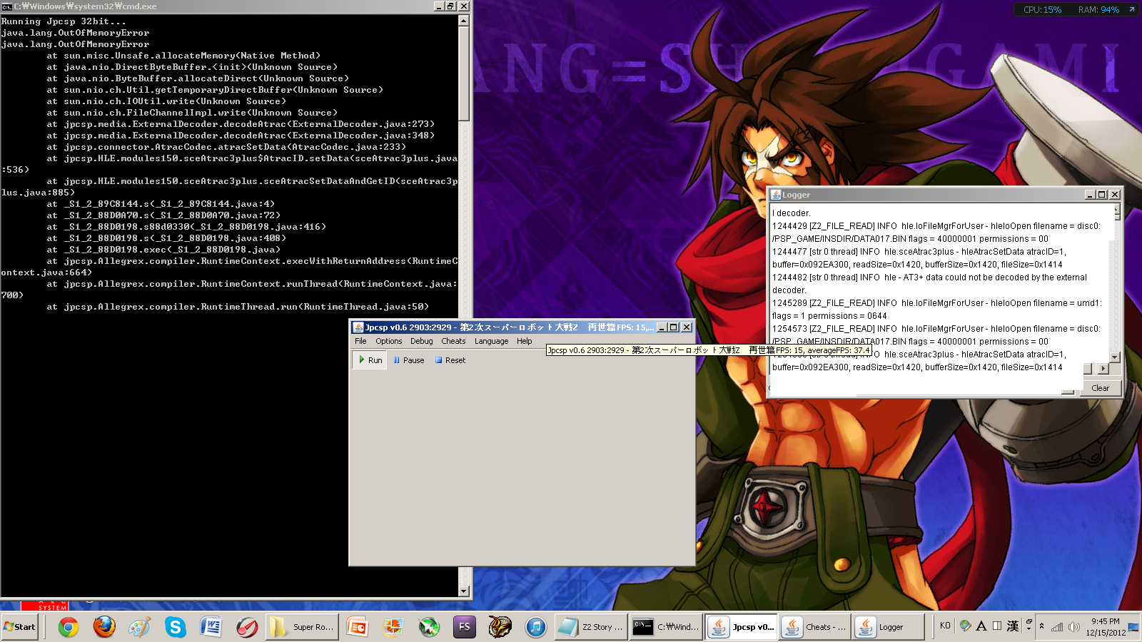 EDIT: Ok i found out how to increase -XmX size, and of course, Jpcsp is giving off the same problems. PC: AMD Sempron Dual Core Processor 2200 2.00 Ghz RAM: 2.00 GB(1.87 GB usable) System-32bit Operating System I know these specs will not make Jpcsp run faster, but i dont care. I've beaten games through this moderate pc, and this glitched up white-boxes problem is the only thing blocking me from playing, which i've ignored at times since it only happened if i played for a while, but now it just starts appearing as soon as the title logo screens appear.