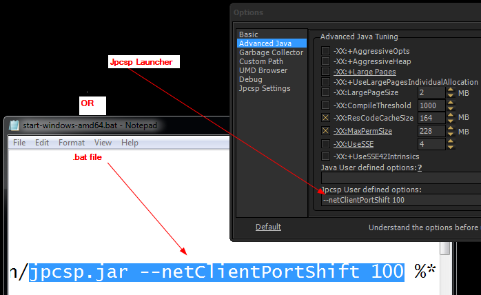 so just to clarify, the --netserverportshift and --netclientportshift commands are supposed to be added in the actual .bat files of jpcsp's that will be run?