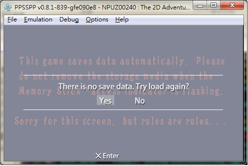 PPSSPP can show "There is no save data.Try load again."