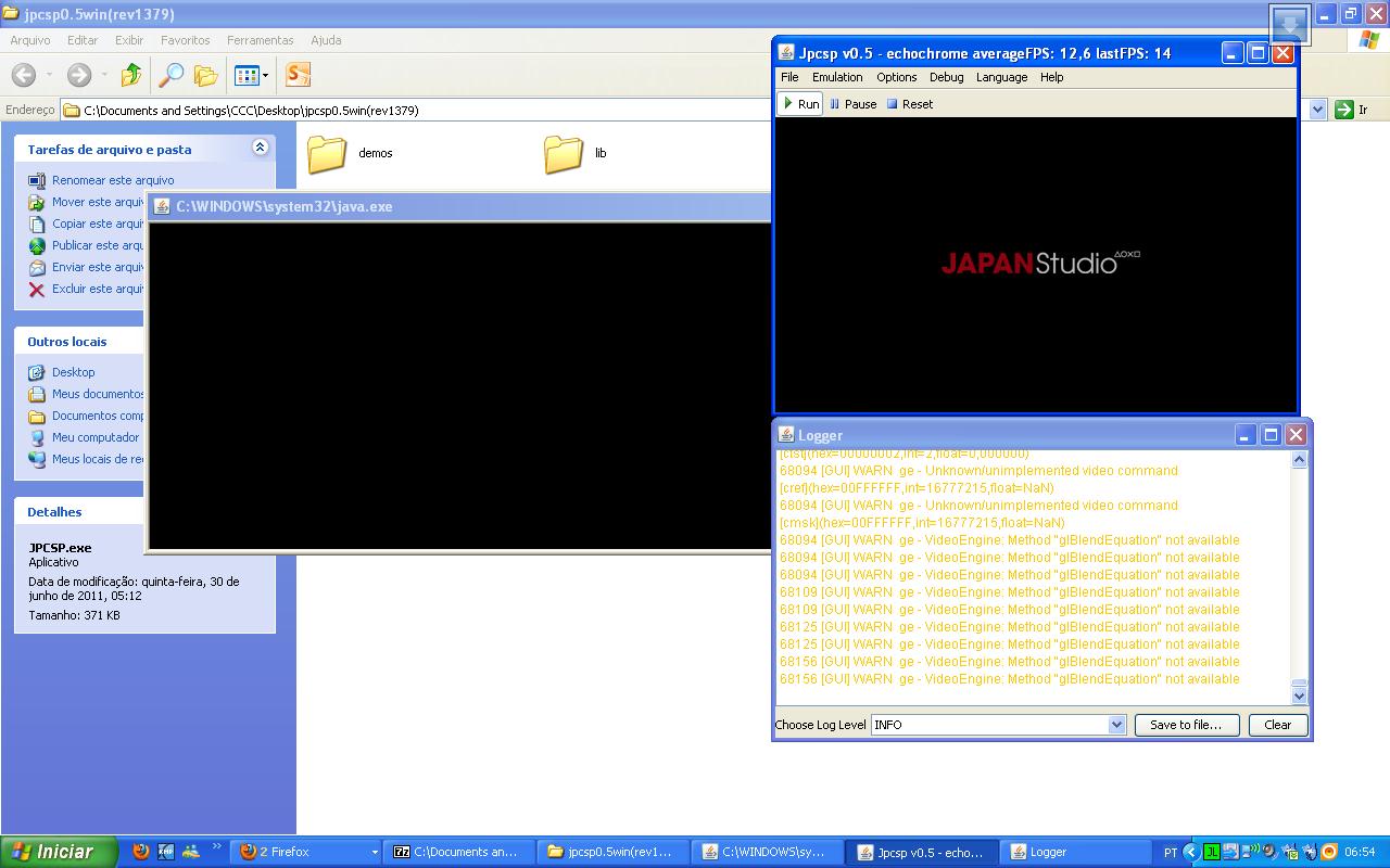 JPCSP games tested with Athlon X2 4850e, 4 GB RAM, Radeon HD 3300 (onboard), OpenGL: 3.3.11653, Windows XP SP3 32-bit PPSSPP games tested with Intel i3, 4 GB RAM, Intel HD Graphics 2000 (onboard), OpenGL: 3.1.0 Build 6.14.10.5421, Windows XP SP3 32-bit